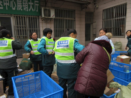 “雙11”期間,山東省茌平縣郵政分公司城區投遞部的投遞員在出班前穿上反光背心。今年,茌平縣分公司特別定做了150套反光背心,并發放到一線員工手中,確保投遞途中人身安全?! 跷航鹬?nbsp; 于琳琳 攝