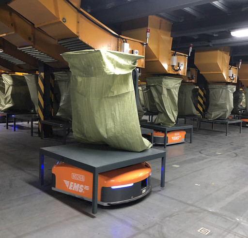 “雙11”期間,在郵政速遞物流華中(武漢)陸路郵件處理中心每天都能看到智能分揀機器人“橙色金剛”以每秒2米的速度繁忙穿梭。今年“雙11”,該處理中心新投入40臺頂升式搬運機器人和25臺大件分揀機器人,郵件處理效率有效提升。   □湖北記者  余麗  攝