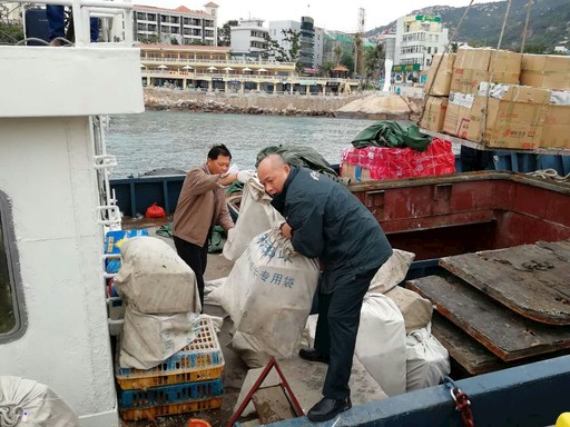 春節前夕,謝堅每天都忙碌著將剛剛到港的包裹搬運下船。