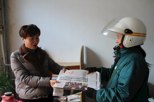 全國(guó)兩會(huì)期間,為方便廣大用戶和人民群眾更好地了解兩會(huì)消息,山東省茌平縣郵政分公司城區(qū)投遞部投遞員徐紅,每天早早地就等候在投遞部,報(bào)紙一分揀完畢,她便騎上車出發(fā)投遞。“你們來(lái)得真及時(shí),我這就把報(bào)紙分發(fā)下去。”茌平縣委黨校傳達(dá)室的工作人員如是說(shuō)。據(jù)了解,兩會(huì)期間,徐紅每天投遞《人民日?qǐng)?bào)》等黨報(bào)100余份。□張培穎 攝影報(bào)道