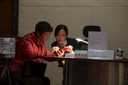 新時代的年輕員工從上一代東四郵政人手中接過接力棒,繼續(xù)探索親情服務的新內涵。圖為理財經理張婷婷指導用戶使用手機銀行辦理業(yè)務。