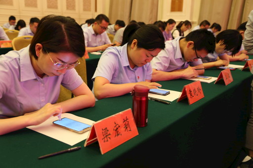 近日,郵儲銀行安徽省分行黨委舉辦了黨務(wù)干部培訓(xùn)班。在培訓(xùn)現(xiàn)場,100余名學(xué)員都在格外認(rèn)真地低頭擺弄手機。湊近一看,原來是學(xué)員們正通過“中郵先鋒”APP進行黨建應(yīng)知應(yīng)會知識線上考試。