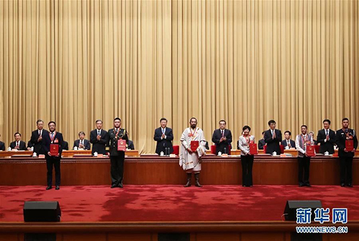 大會表彰了全國民族團結進步模范集體和模范個人,665個模范集體、812個模范個人受到表彰。在歡快的樂曲聲中,習近平等為受表彰的模范集體和模范個人代表頒獎。