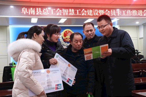 1月8日,郵儲銀行安徽省阜南縣支行聯合縣總工會,舉行了智慧工會建設暨會員卡工作推進會。該會員卡免費向全縣工會會員發放,集工會幫扶服務、優惠購物消費、金融理財等多種功能于一體,持此卡可享受一元洗車、一元觀影、超市滿減、節日惠等優惠。截至目前,該會員卡已發放2000張。圖為阜南縣支行工作人員在推介會員卡。□劉華武 張晨曦 攝影報道
