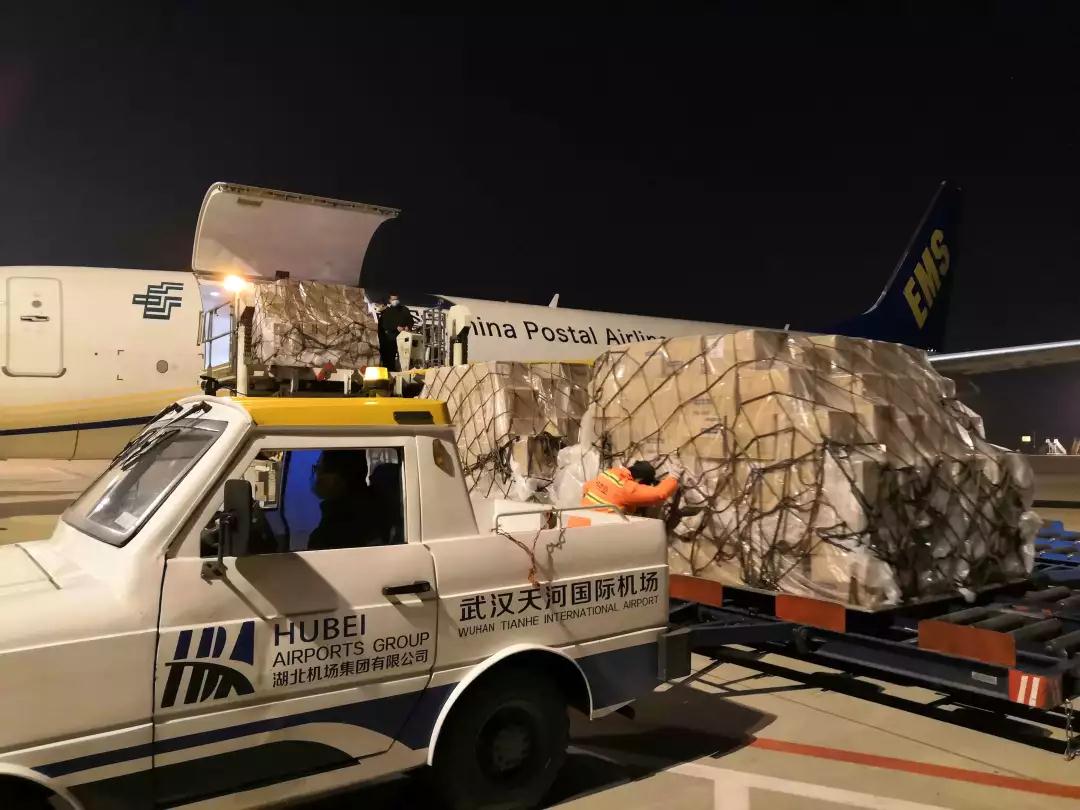 21時(shí)18分,郵航CF9117航班在武漢天河機(jī)場降落后,郵航武漢辦事處人員和天河機(jī)場地面保障人員立即展開卸機(jī)作業(yè),全部作業(yè)流程順暢有序,僅歷時(shí)20分鐘。一場緊張忙碌的作業(yè)后,這批物資已迅速運(yùn)往需求方處。