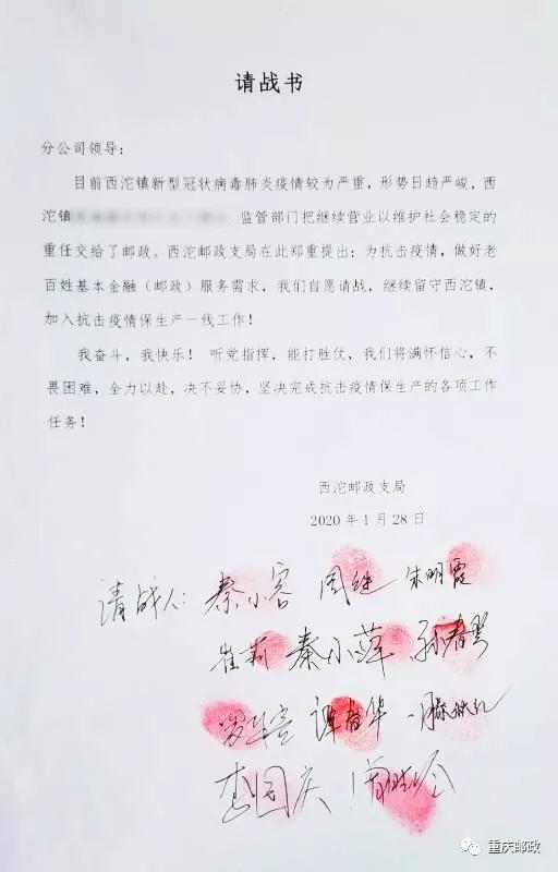 請(qǐng)戰(zhàn)書上,有郵政人11枚鮮紅的指印