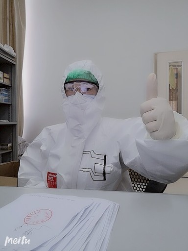 7:30站到了緩沖區?!岸脊治耶敵醪缓煤蒙蠈W,要是不上護校念醫科大學該有多好,早就在第一線了”“我是郵政員工,不能給中國郵政丟臉”“我現在是志愿者,我要完成好每項任務”“我在發熱門診,我得做好防護,我的抵抗力還是很強的”……這是楊志珍第一次穿防護服,而且這個第一次就“直奔”一級防護,此時,楊志珍腦子里像不停調著頻率的收音機一樣。