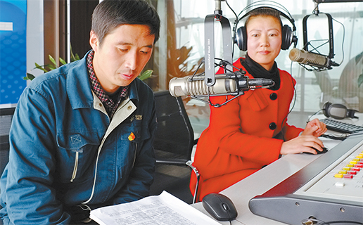 新華網、央廣網、《徐州日報》、豐縣電視臺等媒體的報道為趙本增的致富朋友圈壯大了“隊伍”。圖為豐縣廣播電臺對趙本增專訪現場。