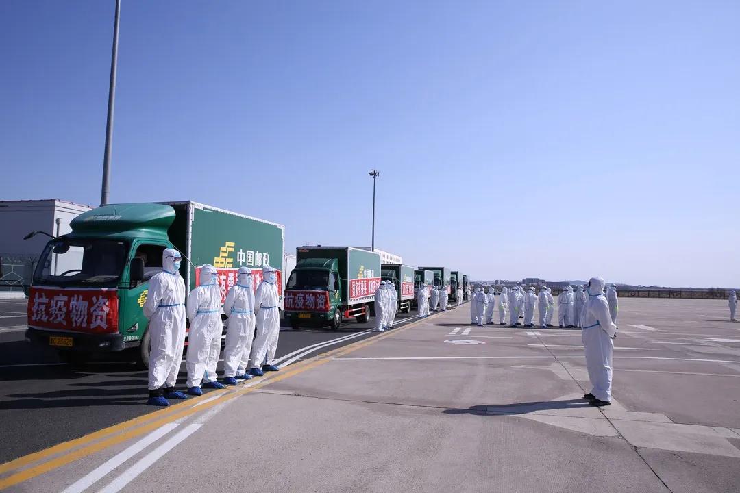 為及時將抗疫物資運送到綏芬河,黑龍江省郵政分公司召開緊急會議,相關負責人趕赴哈爾濱、牡丹江兩大機場一線指揮,并迅速組織哈爾濱郵區中心局和牡丹江市郵政分公司展開航班物資接卸及陸路運輸工作。哈爾濱郵區中心局接到通知后第一時間著手調配4臺22噸的郵政貨車,牡丹江郵區中心局緊急調配12噸、8噸、4噸等共10臺郵政貨車承擔運輸任務。