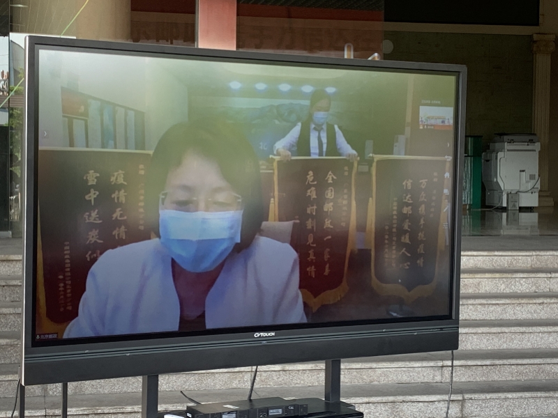 儀式上,廣州郵政與北京郵政通過現場電視大屏,進行了遠程網絡連線。“雖然天各一方,但視頻連接著你我。”北京郵政副總經理王艷十分感動,她在視頻中展示了三面錦旗,向廣州表示,“疫情無情人有情,雪中送碳是親人!”
