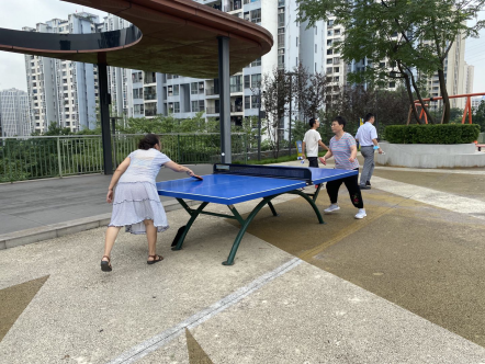 大水井體育文化公園內,附近居民正在打乒乓球。(求是記者陳金霞攝)