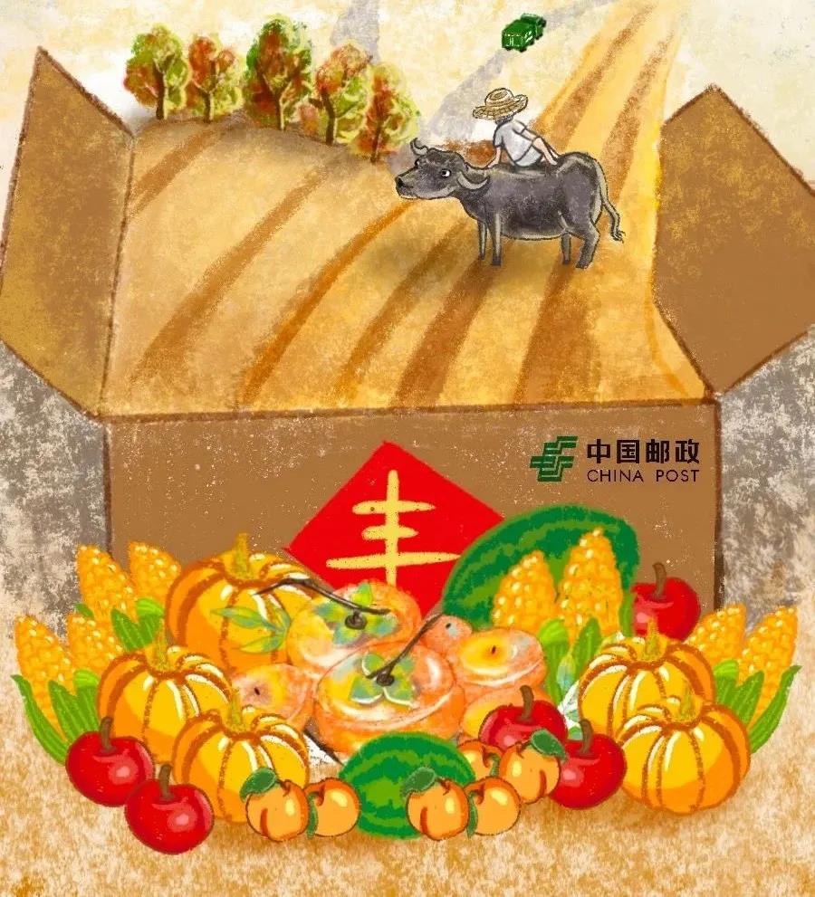 在浩瀚的農民豐收長卷上留下了一抹濃濃的郵政綠