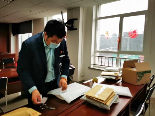 按照分工,柴閃閃負(fù)責(zé)代表團(tuán)內(nèi)的服務(wù)工作,陳蘭穎負(fù)責(zé)和代表團(tuán)以及駐地溝通,在符合代表團(tuán)規(guī)定和疫情防控要求的前提下提供郵政服務(wù)。3月6日中午時(shí)分,柴閃閃急匆匆地扒拉了兩口飯,就回到房間,一張張地將有需求的代表和工作人員填好的、由陳蘭穎特別制作的兩會(huì)服務(wù)單拍照回傳給她。東四郵局內(nèi),隨著手機(jī)上微信信息不斷響起,陳蘭穎帶著工作人員仔細(xì)對(duì)照服務(wù)單,給代表和工作人員分裝郵件。陳蘭穎說:“我的手機(jī)24小時(shí)開機(jī),有不清楚的問題,無論是閃閃還是其他代表可以隨時(shí)找我。”晚上7點(diǎn),經(jīng)過嚴(yán)格消毒處理的郵件被東四郵局的工作人員送到代表團(tuán)駐地,以“無接觸”的形式由工作人員領(lǐng)走。