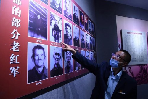 在臘子口戰(zhàn)役紀(jì)念館,向軍濤領(lǐng)著我們來到一面展墻,指著其中的兩張照片自豪地介紹:“這是我的奶奶高秀英,是一名光榮的紅軍戰(zhàn)士。”通過向軍濤的敘述,我們得知,向軍濤的奶奶高秀英于1932年帶著年幼的弟弟高步清一起參加了紅軍。從1932年到1936年,跟著紅四方面軍輾轉(zhuǎn)各地,從婦女獨(dú)立營營員到班長,一路走來,經(jīng)歷了諸多苦難。后因交戰(zhàn)時,右手的四個指頭被打斷,傷勢嚴(yán)重,無法繼續(xù)前行,而散落在臘子口至茨日那一帶。