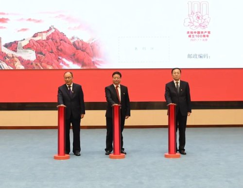 2021年6月29日,《中國共產黨成立100周年》紀念郵票和紀念封在中國共產黨歷史展覽館隆重發布。中共中央宣傳部副部長蔣建國,國家郵政局黨組書記、局長馬軍勝,中國郵政集團有限公司黨組書記、董事長劉愛力出席發布儀式并為《中國共產黨成立100周年》紀念郵票揭幕,國家郵政局黨組成員、副局長戴應軍,中國共產黨歷史展覽館館長吳向東,中國郵政集團有限公司黨組成員、副總經理康寧為《慶祝中國共產黨成立100周年》紀念封揭幕。中國郵政集團有限公司黨組成員、副總經理王儉主持。