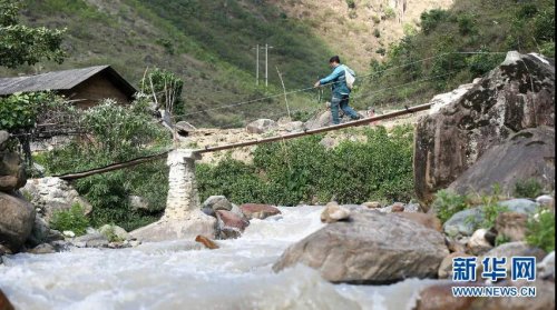 桑南才送郵件途中經(jīng)過(guò)獨(dú)木橋 劉東 攝