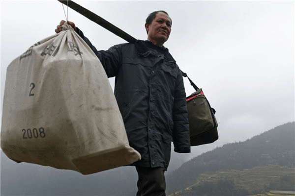 中國郵政集團(tuán)公司貴州省錦屏縣分公司啟蒙支局的鄉(xiāng)郵員張林昌曾是一名老兵,他1983年入伍,1987年退役,退役后,他主動申請到錦屏縣最難走的郵路送信送報(bào),一干就是32年。