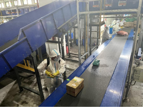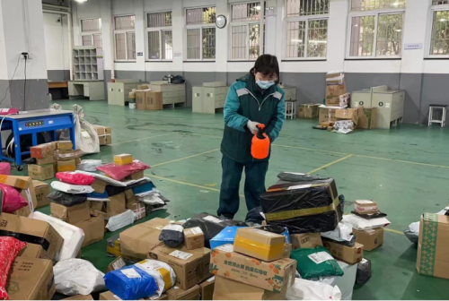 郵件到達營投部后,郵政人員對車輛和郵件還要進行全面消殺。“工作人員上崗前發(fā)送健康碼和行程碼,到崗后第一件事先測量體溫做好登記,佩戴手套、口罩等,然后對車輛全部消殺一遍,對郵件外包裝至少每2小時進行一次消殺……”中國郵政集團有限公司南京市鼓樓區(qū)寄遞事業(yè)部副總經(jīng)理馬曉東說道,營投部每日進行多頻次消殺和通風,從操作間地面、快遞傳送帶到每一個快遞包裹,都會噴灑消毒,確保全覆蓋、無死角,保證生產(chǎn)生活環(huán)境清潔安全。