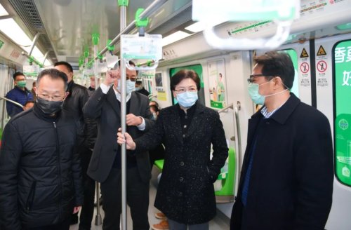市長(zhǎng)韓立明乘坐地鐵三號(hào)線。