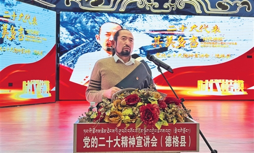 近日,黨的二十大代表、“時(shí)代楷?!薄拇ㄊ「首慰h郵政分公司駕押組組長(zhǎng)其美多吉回到家鄉(xiāng)德格縣,宣講黨的二十大精神。其美多吉結(jié)合自己的奮斗經(jīng)歷和切身感受,談時(shí)代變化、看家鄉(xiāng)發(fā)展、頌黨的恩情,把黨的二十大精神送到了家鄉(xiāng)父老的心窩里,現(xiàn)場(chǎng)頻頻響起熱烈的掌聲?,F(xiàn)場(chǎng)聆聽(tīng)宣講的300余名干部職工、農(nóng)牧民群眾、師生代表紛紛表示,將繼續(xù)堅(jiān)定不移聽(tīng)黨話(huà)、感黨恩、跟黨走,踔厲奮發(fā),勇毅前行,在新征程上做出更大的業(yè)績(jī)。