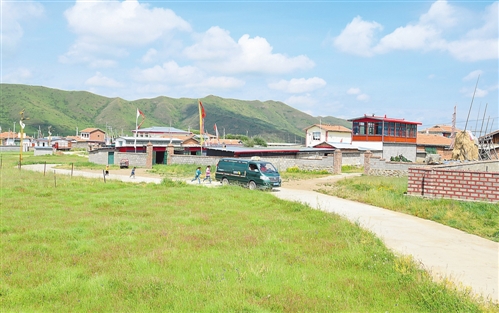 上午8:30,烈日當(dāng)空,哈弄奪機(jī)像往常一樣,驅(qū)車前往“長征郵路”第一站班佑村。沿途獵獵作響的經(jīng)幡旁,整齊排列著政府為牧民建造的安居房,村落中間總有一抹綠色,那是點(diǎn)綴在這片土地上的“郵政綜合便民服務(wù)站”。