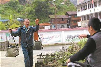 河口鄉(xiāng)位于大山腹地,村與村看似近在眼前,實則山水環(huán)繞,道路蜿蜒曲折。“上山鉆云天,下山到河邊,兩山能對話,走路要半天”是這里的真實寫照。早些年,當?shù)貨]有固定的郵政營業(yè)點。分揀完郵件后,張林昌要用扁擔挑起三四十斤重的郵包,沿著山路逐戶投遞,一個來回就是90余公里。餓了找點野果,渴了捧口山泉,有時候還要涉溪渡河。第一次送郵件,張林昌整整走了3天。回來時,只見他頭發(fā)蓬亂,褲腳沾滿泥巴,衣服被刺穿了好幾個洞,手腳上還有一道道血印子。但他絲毫不覺得苦:“當過兵的人有一副‘鐵腳板’,走這樣的山路不算事。”