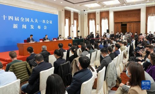 3月4日,十四屆全國人大一次會議在北京人民大會堂舉行新聞發(fā)布會。大會發(fā)言人王超就會議議程和人大有關(guān)工作回答中外記者提問。新華社記者 邢廣利 攝