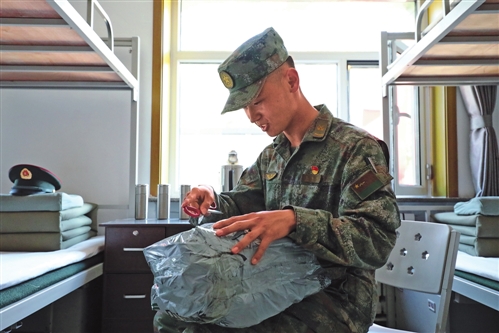 7月25日下午,在位于內蒙古自治區阿爾山市大興安嶺深處的三角山邊防連,記者與戰士張岳麟一起,從營區門口的郵政驛站取回了令他期待不已的家鄉包裹。“是家里寄來的零食和幾件厚衣服。”拆包裹時,張岳麟的笑容感染了在場的所有人。
