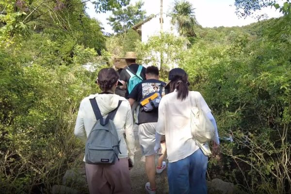 采訪組穿過(guò)山間小道,探尋養(yǎng)蜂人羅亮文的養(yǎng)蜂地
