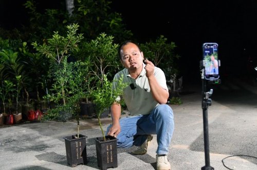 晚上7點半,采訪組到達位于武利鎮的欽州電商直播基地時,這里依舊非常熱鬧?!凹胰藗?,只要在直播間打‘苗木’兩個字,不僅買苗木有折扣,我們還會第一時間用郵政寄出去,又快又好。”鏡頭前,該基地負責人黃忠文正在打光燈下展示著新培育的苗木。