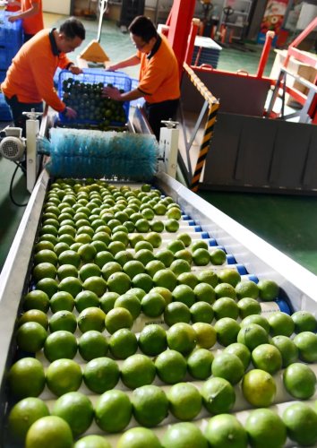 “在我們這條20多米的分揀線上,可以根據客戶要求設置果徑、重量等參數,精準篩選每一枚水果,大大提高了分揀效率?!比妻r業副總經理劉翔介紹說。場地另一側,剛剛分揀好的水果被放上皮帶傳送機,郵政工作人員隨即將其裝車發往全國各地。