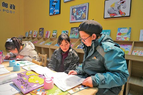 在“愛心書屋”,郵政工作人員陪伴孩子們度過充實、溫馨的寒假時光。 □冉七龍 攝