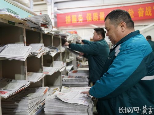 郭紅崗(右一)在分揀報紙。長城網·冀云客戶端記者 劉俐驗 攝