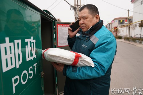 全國人大代表、中國郵政集團有限公司邢臺市分公司基層投遞員郭紅崗電話通知村民取快遞。長城網·冀云客戶端記者 劉俐驗 攝