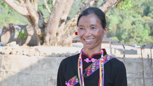 跟著取好快遞的村民鐘小蘭的腳步,記者走進(jìn)她年初剛搬進(jìn)的兩層新家。自2022年4月現(xiàn)代化邊境幸福村建設(shè)項(xiàng)目啟動(dòng)以來(lái),班角老寨的村民們?cè)诋?dāng)?shù)卣畮椭录娂娚w起了新房。站在鐘小蘭家二層放眼望去,國(guó)境線(xiàn)另一側(cè)的山巒清晰可見(jiàn),感受到記者一行的好奇,去過(guò)緬甸的鐘小蘭跟記者分享了自己的見(jiàn)聞。頓了頓,她沖記者展開(kāi)幸福的笑容:“現(xiàn)在村里水電、網(wǎng)絡(luò)、取快遞都很方便,我感覺(jué)生活在中國(guó),真的很幸福!”