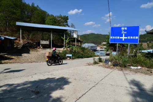 從阿里村出發(fā),采訪(fǎng)組沿著臨近中緬邊界的抵邊村郵路前行,路旁的邊界安全提示牌以及“黨的光輝照邊疆,邊疆人民心向黨”的紅色標(biāo)語(yǔ)牌都顯示出這里特殊的地理位置。采訪(fǎng)組一行的目的地班角老寨距中緬國(guó)境線(xiàn)僅1公里,與緬甸撣班和佤邦毗鄰,素有“國(guó)門(mén)第一寨”之稱(chēng)。