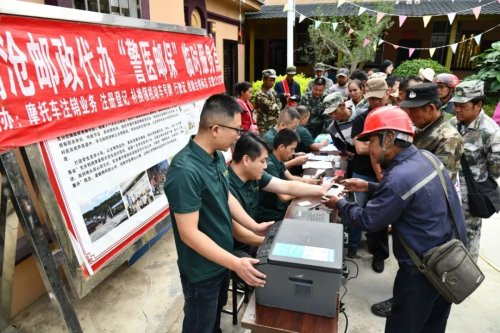 郵路通達(dá)抵邊村,便民服務(wù)也隨之深入抵邊村。2023年7月,瀾滄縣郵政分公司與當(dāng)?shù)亟还懿块T(mén)聯(lián)合啟動(dòng)“警醫(yī)郵保”項(xiàng)目,在抵邊村設(shè)置臨時(shí)服務(wù)點(diǎn),為村民們現(xiàn)場(chǎng)辦理摩托車(chē)滅失注銷(xiāo)登記、保險(xiǎn)繳納、車(chē)輛免檢、證照檢審等業(yè)務(wù),獲得了村民們的熱烈歡迎和一致好評(píng)。
