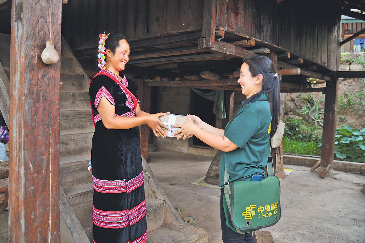 班角老寨素有“國門第一寨”之稱,距中緬國境線僅1公里。抵邊自然村通郵后,郵件可以直接送進(jìn)村寨。現(xiàn)在李永梅每周進(jìn)村投遞3次,除了黨報黨刊,還會捎帶上村民的快遞包裹,主要是大家網(wǎng)購的衣服、小家電等生活用品。