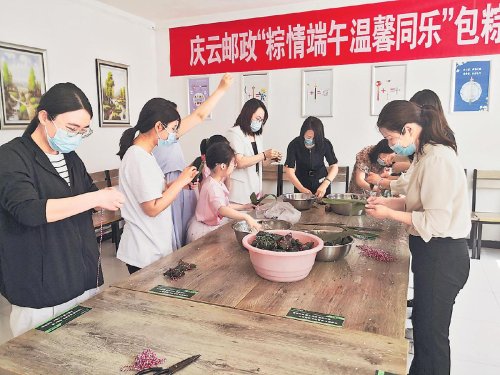 每年端午,德州市慶云縣郵政分公司都會(huì)邀請(qǐng)客戶到“職工小家”開展包粽子活動(dòng)。 □李平 攝