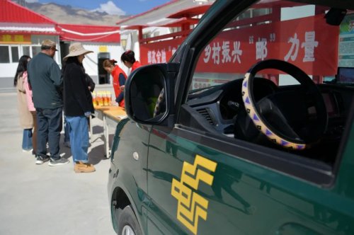 村委會中心迎風招展的五星紅旗下,綠色的郵車即將完成郵件交接,而鮮紅的“郵政金融‘零’距離,鄉村振興‘郵’力量”橫幅旁,辦理業務的村民仍絡繹不絕。