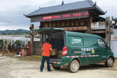 在廣西憑祥桂商現(xiàn)代農(nóng)業(yè)生態(tài)園里,郵政工作人員正將一箱箱打包好的葡萄搬上郵車,準備發(fā)往各地。