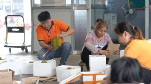 眼前,郵政工作人員正忙著將一個個新鮮的榴蓮打包。據(jù)這里的負責人潘新杰介紹,憑祥郵政倉是2017年設立的,成為當?shù)剜]政服務東南亞水果寄遞體系中的關鍵一環(huán)。通過“引商入倉”“電商造包”等增值服務舉措的相繼實施,該倉已從最初單一的收寄服務,逐步拓展至集倉儲、銷售、打包、寄遞為一體的全環(huán)節(jié)服務,不僅提升了郵政服務的綜合效能,更在扶持當?shù)仉娚炭蛻舴矫姘l(fā)揮了積極作用。