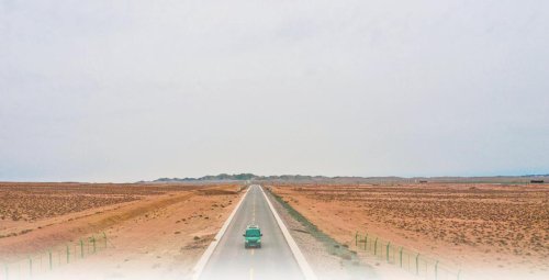 5月22日,采訪組乘坐汽車趕往馬鬃山鎮。215國道沿途的戈壁荒漠給人以遼闊、壯麗、肅穆、深邃的感覺。驀然間,一抹亮麗的綠色浮現眼前,是前往馬鬃山鎮的郵車!在這荒涼的戈壁灘上,中國郵政沒有缺席。