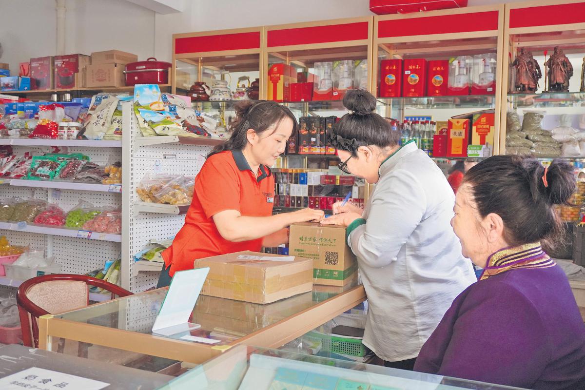 飛馬商行是一家有著30多年歷史的老店,店主烏仁恒和她的母親經營著這家主要銷售民族特色食品、日用品的商店。這些商品往往需要到青海西寧、內蒙古呼和浩特等地去進貨?!耙郧爸荒茏L途班車去,路上輾轉多次,訂好貨后或肩扛手提或發物流件回來,不僅時間長,成本也很高。現在則方便了很多,在線上看好樣品,通過郵政包裹寄到店里,省時又省力?!睘跞屎愕哪赣H高興地說,“進貨成本的下降體現在商品價格上,因為價格更實惠了,來店里購物的顧客也更多了?!?/p>