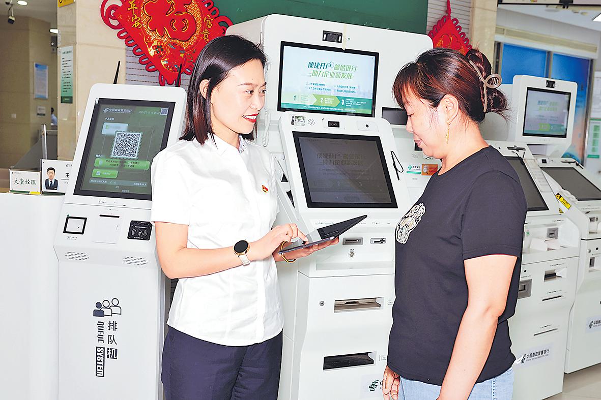 崔靜靜向客戶介紹信貸業務。