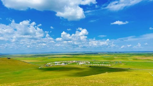 盛夏的呼倫貝爾大草原,清澈的藍(lán)天上懸掛著朵朵白云,目之所及是廣闊無(wú)垠的綠,牛羊成群,美得就像一幅畫(huà)。