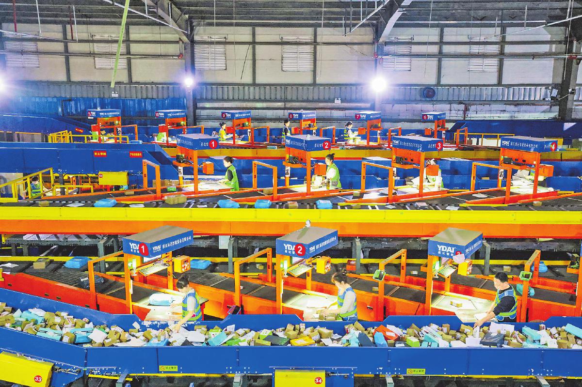 今年“雙11”期間,浙江溫州郵件高峰處理量是日常的1.32倍以上。夜幕下,溫州郵政婁橋分撥中心燈火通明,近100名員工開足馬力,利用高效自動(dòng)化分揀設(shè)備處理郵件,生產(chǎn)現(xiàn)場(chǎng)忙碌而有序。10月22日至11月18日,婁橋分撥中心累計(jì)處理快遞郵件553.72萬件,日處理峰值達(dá)30.4萬件。