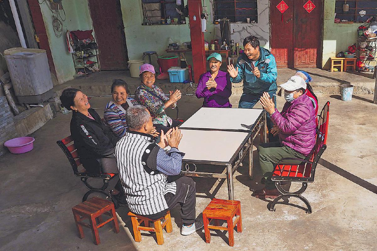 工作之余,桑南才將村民聚在一起,為他們繪聲繪色地講解黨的政策和郵政助農(nóng)惠農(nóng)的措施。 □《工人日報》記者 吳凡 攝