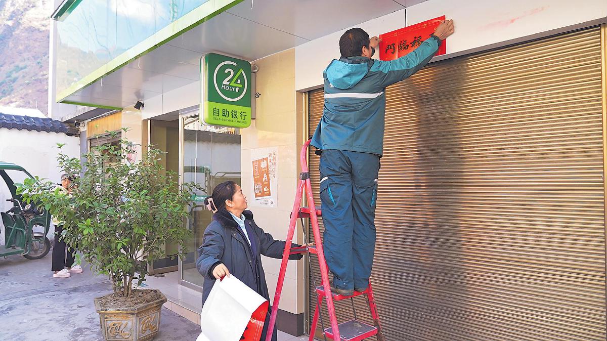 臨近春節(jié),桑南才和妻子在郵政所掛上燈籠、貼上春聯(lián),期望新的一年平安幸福,為鄉(xiāng)親們更好地服務(wù)。 □張晉通 攝
