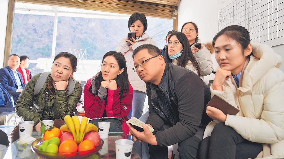 采訪中,中央、行業(yè)媒體記者們被桑南才的故事深深吸引。 □張晉通 攝